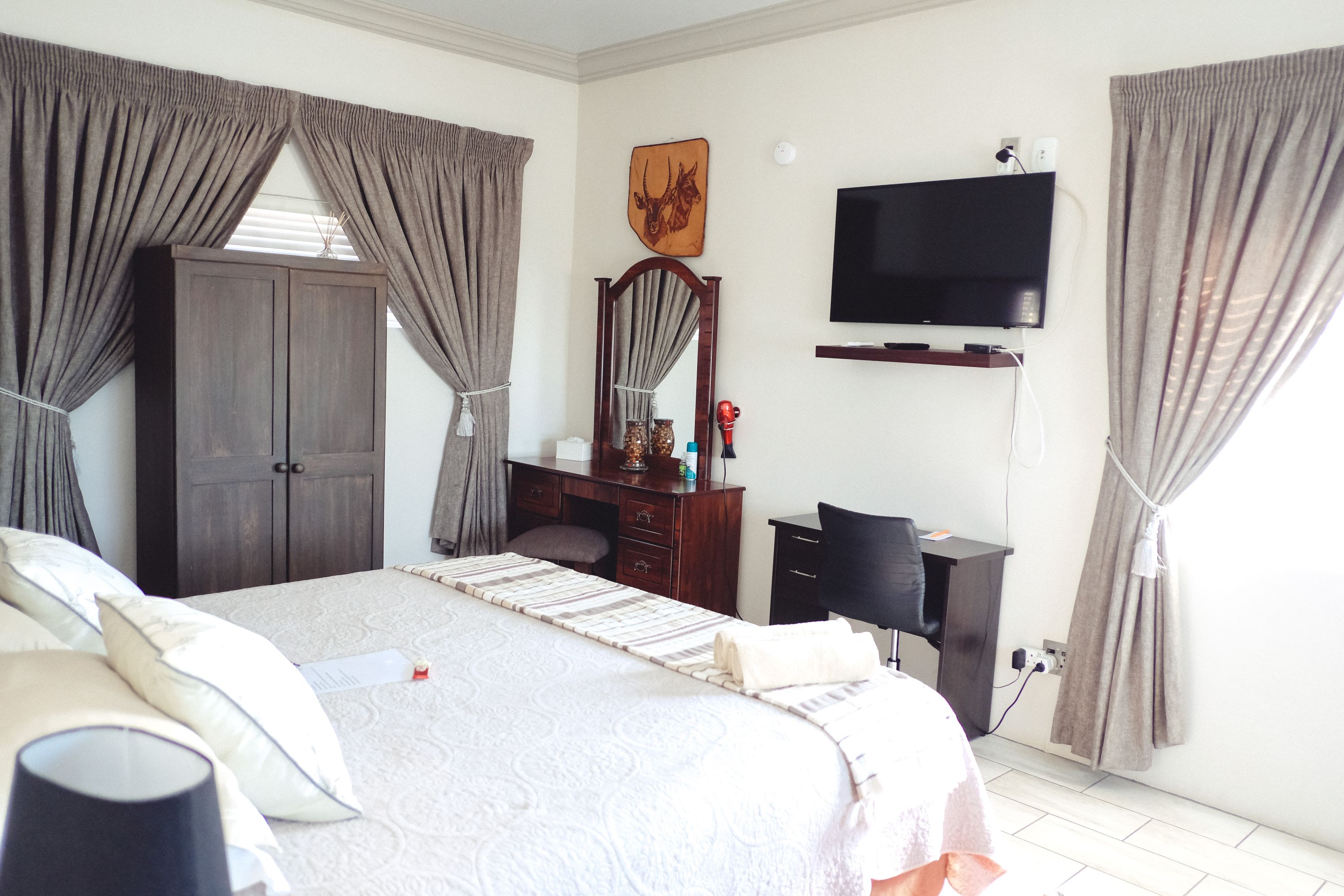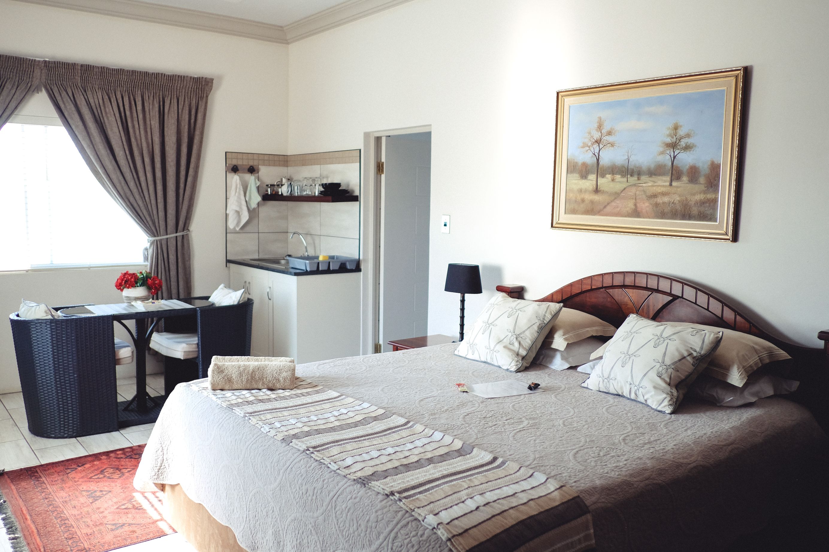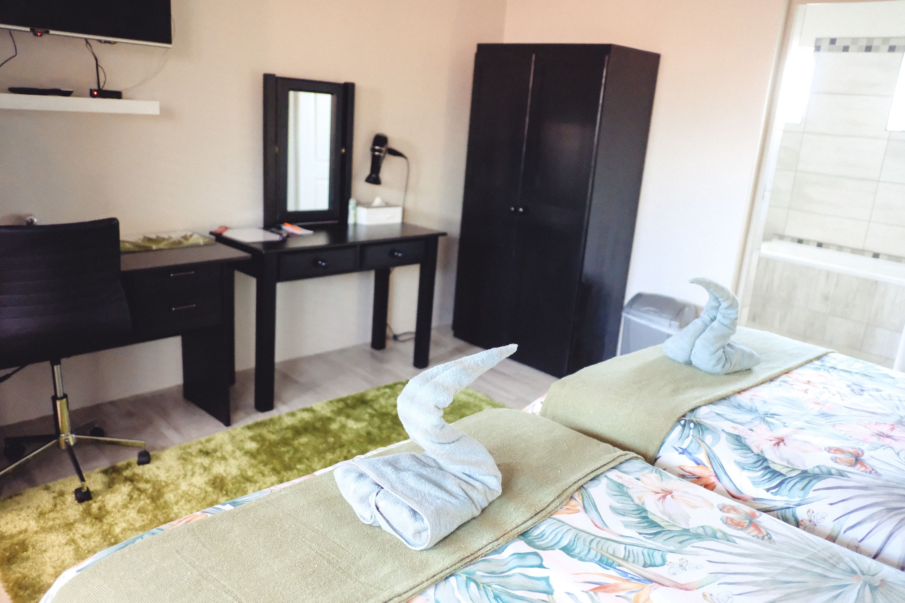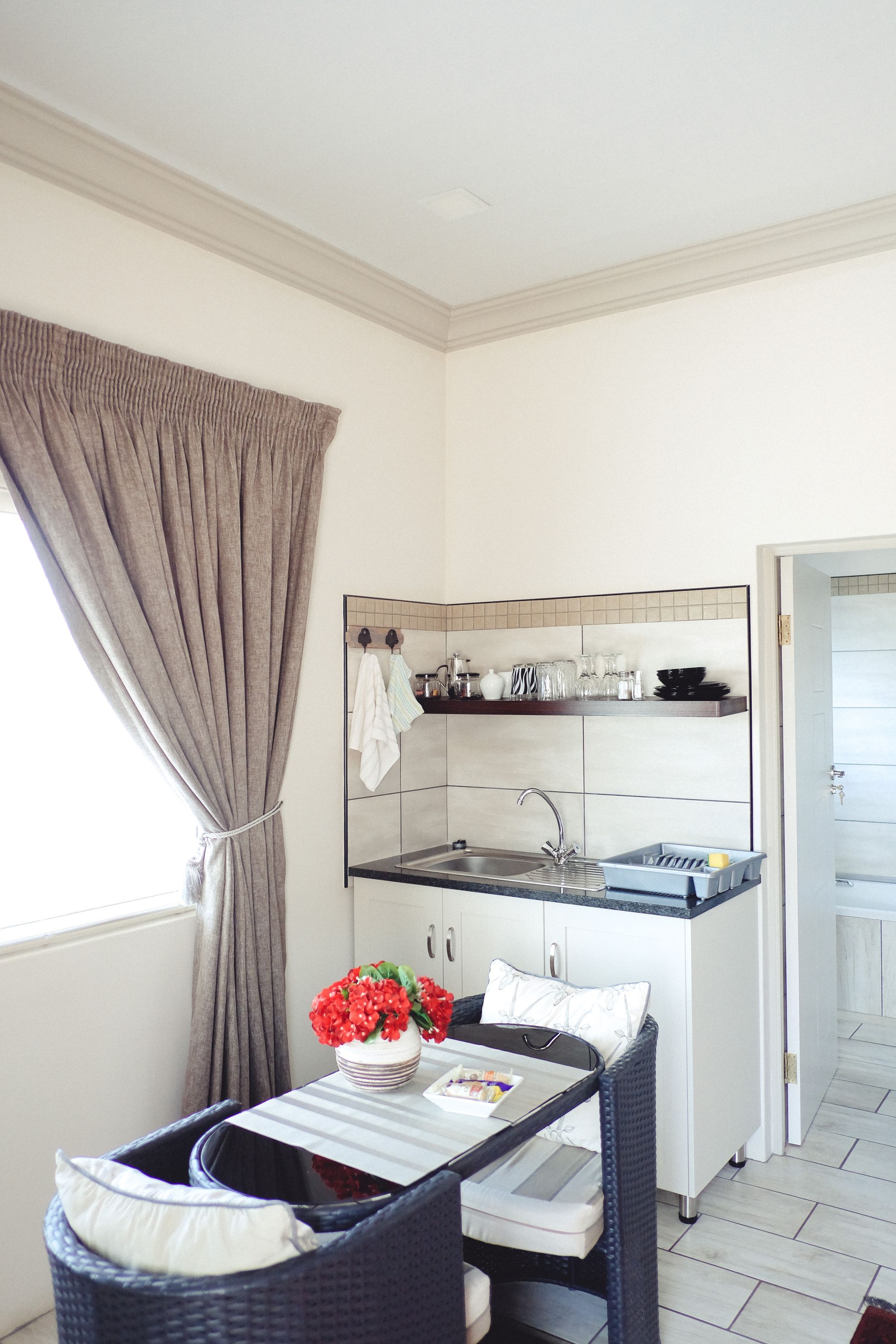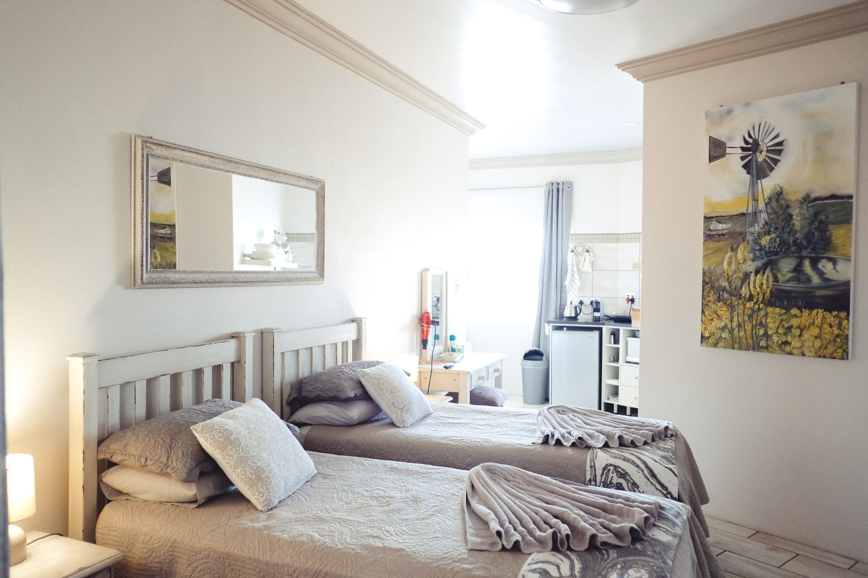 Ideal for students and representatives with two single beds. For small families the single beds can be converted to one King Size Bed and additional camping cot and/or mattress. Furnished with block out curtains and adjustable floor heating. Fully equipped Kitchenette with microwave, one plate induction stove, Toaster, Nespresso Coffee Machine, Small Bar Fridge, Full On suite bathroom with shower. Retractable ceiling fans with light and workstation with FREE WIFI. Open View Smart TV.